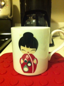 This photo challenge is kinda funny for me. Not having to share half of anything with a husband or everything with children, I tend to think of everything as mine. And probably without me even realizing it, I would be bent out of shape it someone used any of the many things that are mine. So it’s hard to narrow this down. But for some reason, mugs are really personal. My favorite one is something I definitely don’t like sharing with guests.