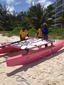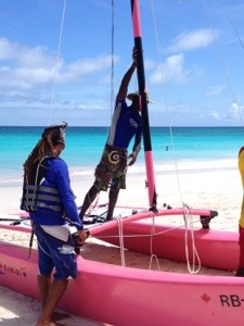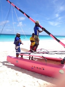 Barbados beaches have plenty of these guys. In the city they’re selling freshly cut sugar cane. On the beach it’s coral jewelry or jet skis or boat rides. These friendly, flirtatious Bajans had the perfect color catamaran to entice customers.