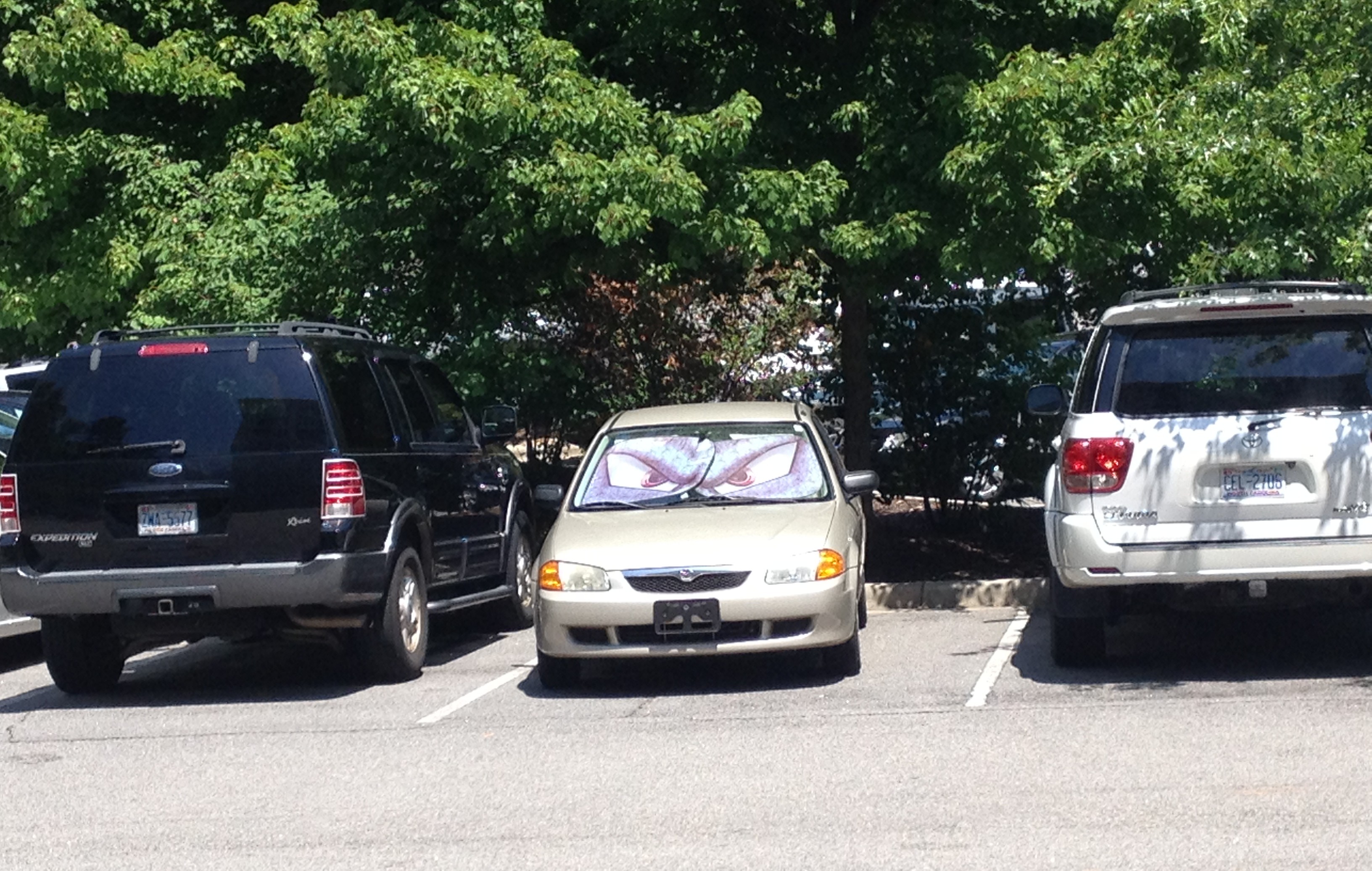 This little gas-friendly buddy seems a bit pissed off to be parked between two gas guzzlers. Or maybe she hates being out in the hot sun. Or maybe I’m putting too much thought into what a car might be thinking.