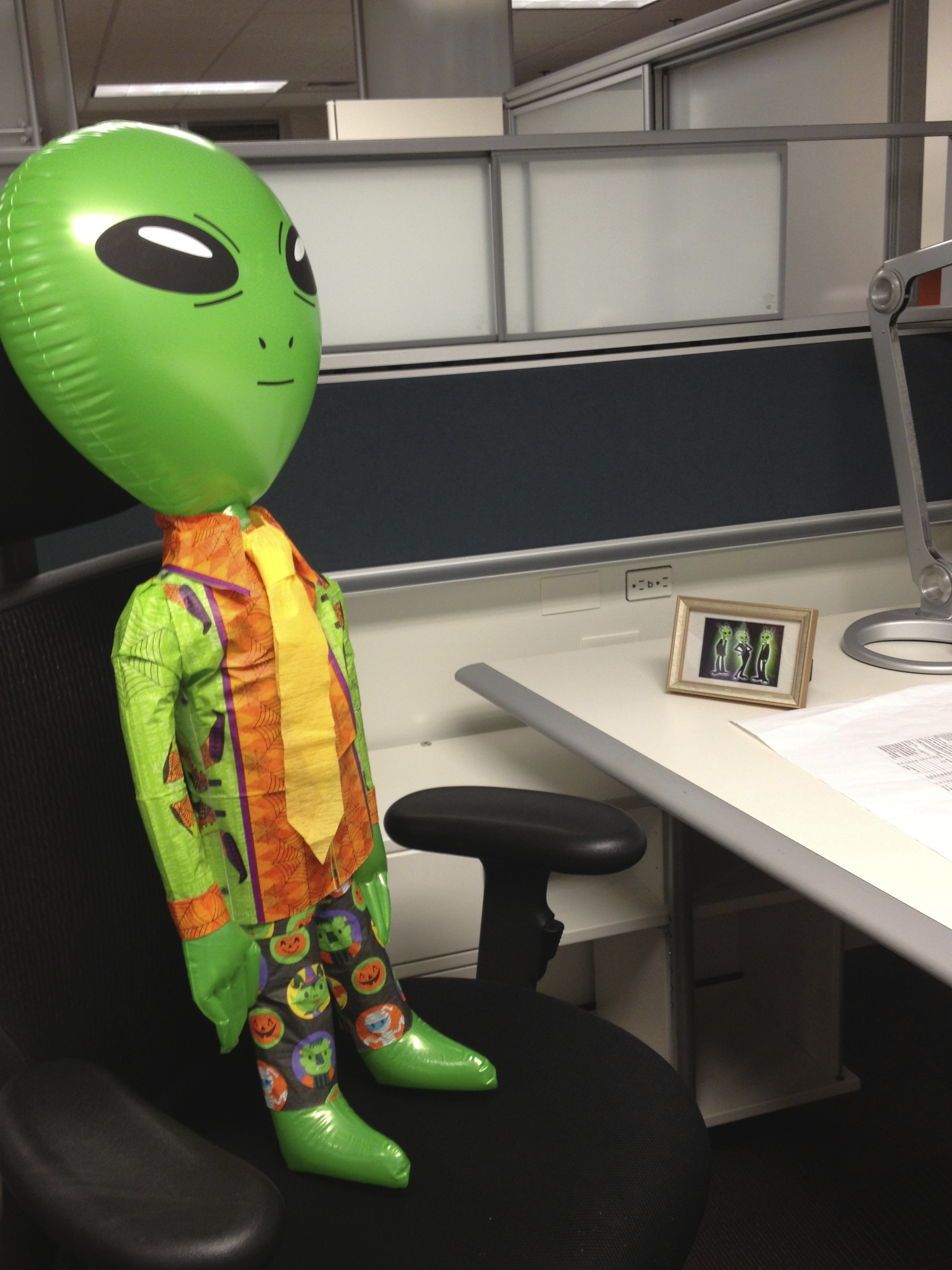 A. Lien, whom we affectionately call Al, is definitely kitsch in Roswell, New Mexico. That city is pretty over the top with the little green men with big eyes. But Al takes it to another level of kitsch with his 1970s inspired Halloween suit.