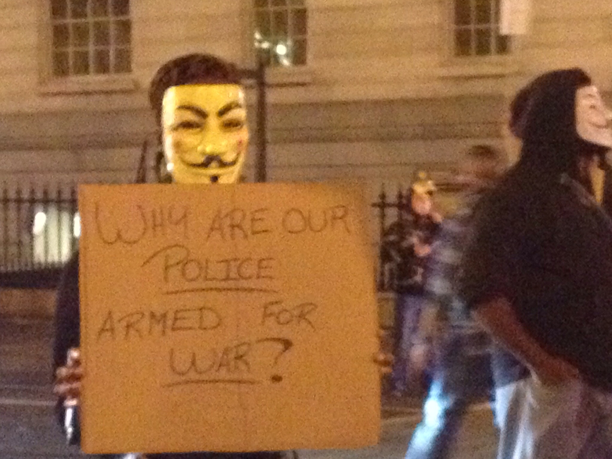 So I was minding my own biz, strolling scurrying down the street on the hunt for dinner when all hell broke loose. Okay maybe not hell, but suddenly me and my brother were surrounded by V for Vendetta masks. We got caught up in the middle of a Guy Fawkes Day protest. And it was fantastic!