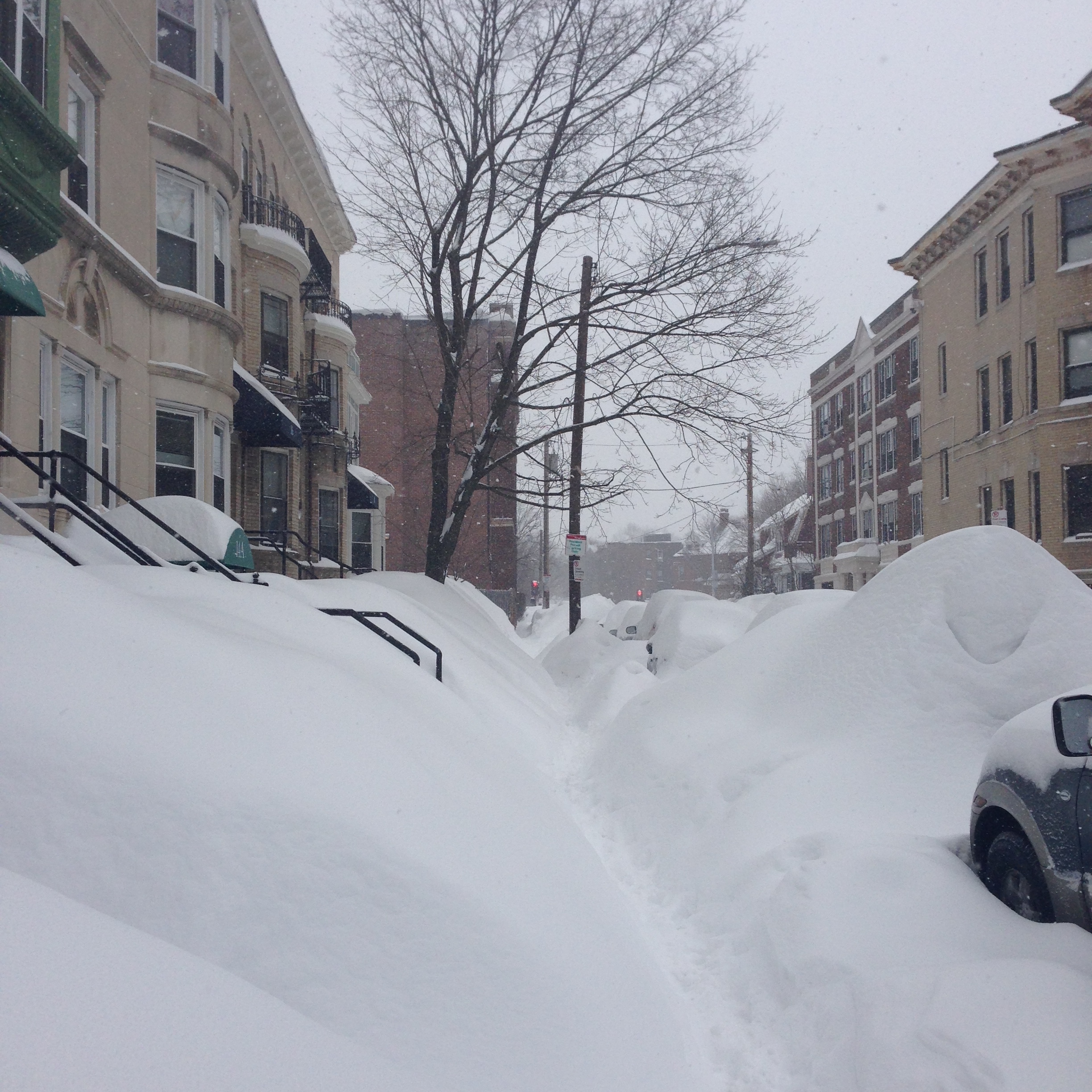A wall of brownstones in Brookline created a wall of fresh snow in a brutal winter.
