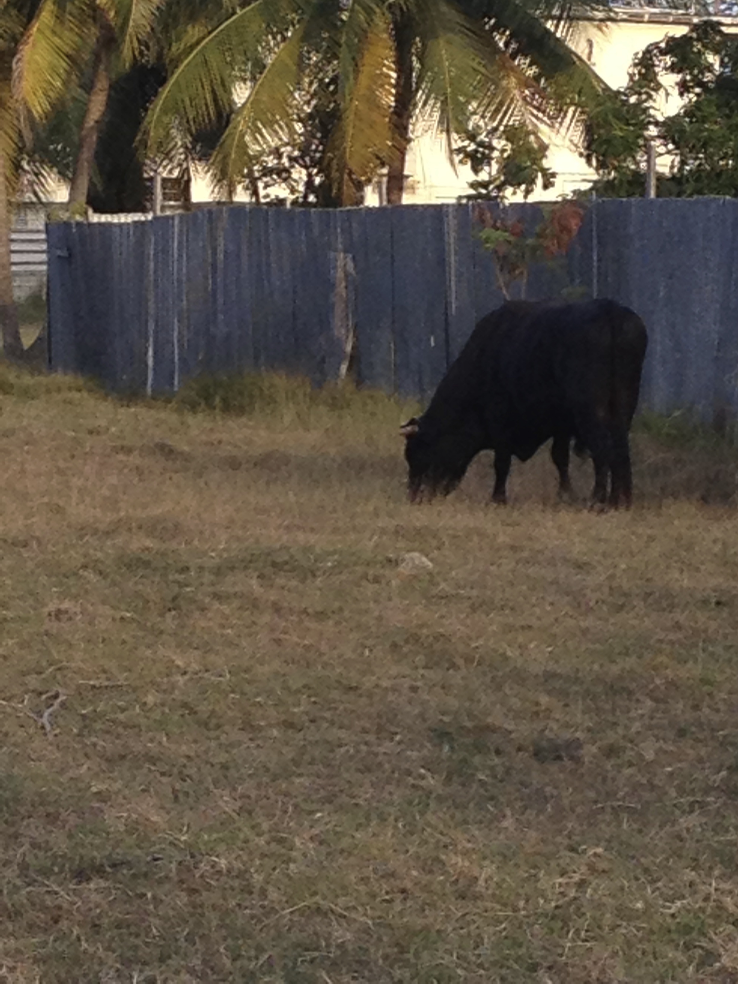 I feel like much of what I photograph is the everyday things I happen upon. Here we are walking through a regular city neighborhood on the way back from a trip downtown, when we came upon a bull grazing in someone’s front yard. UN-TIED BULL IN THE FRONT YARD!