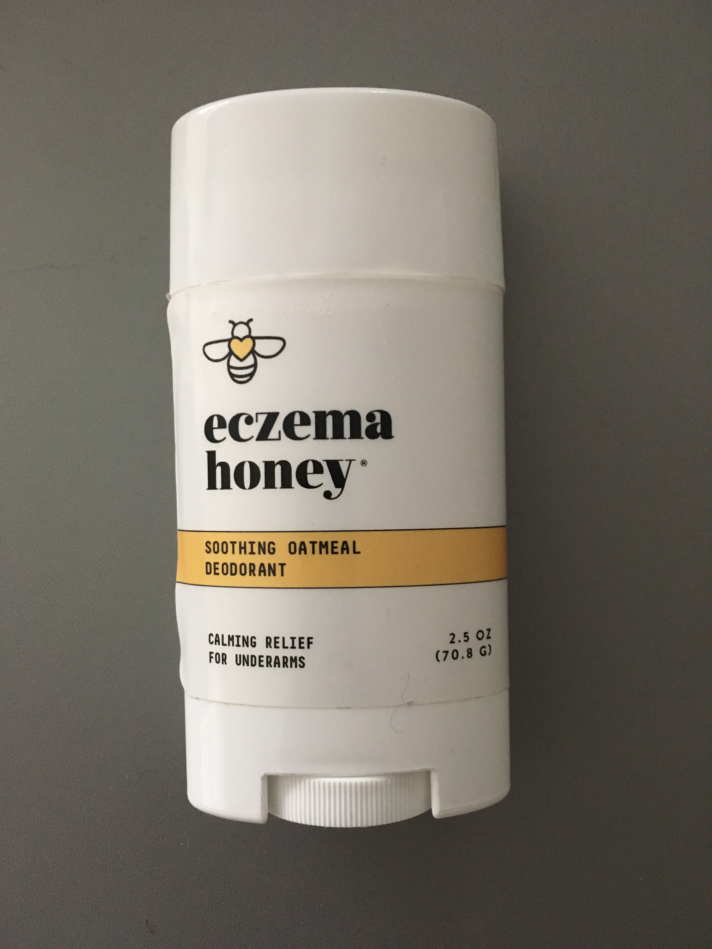 It definitely lives up to the billing “calming relief for underarms.” I had to adapt to having something scented under my arms (I prefer unscented products). But the smell is pleasant and smells like a lot of my natural hair products which contain honey. My underarm eczema cleared up faster than the my neck, face and torso. It didn’t keep me from sweating as much as an antiperspirant would, but was effective at keeping the funk at bay.