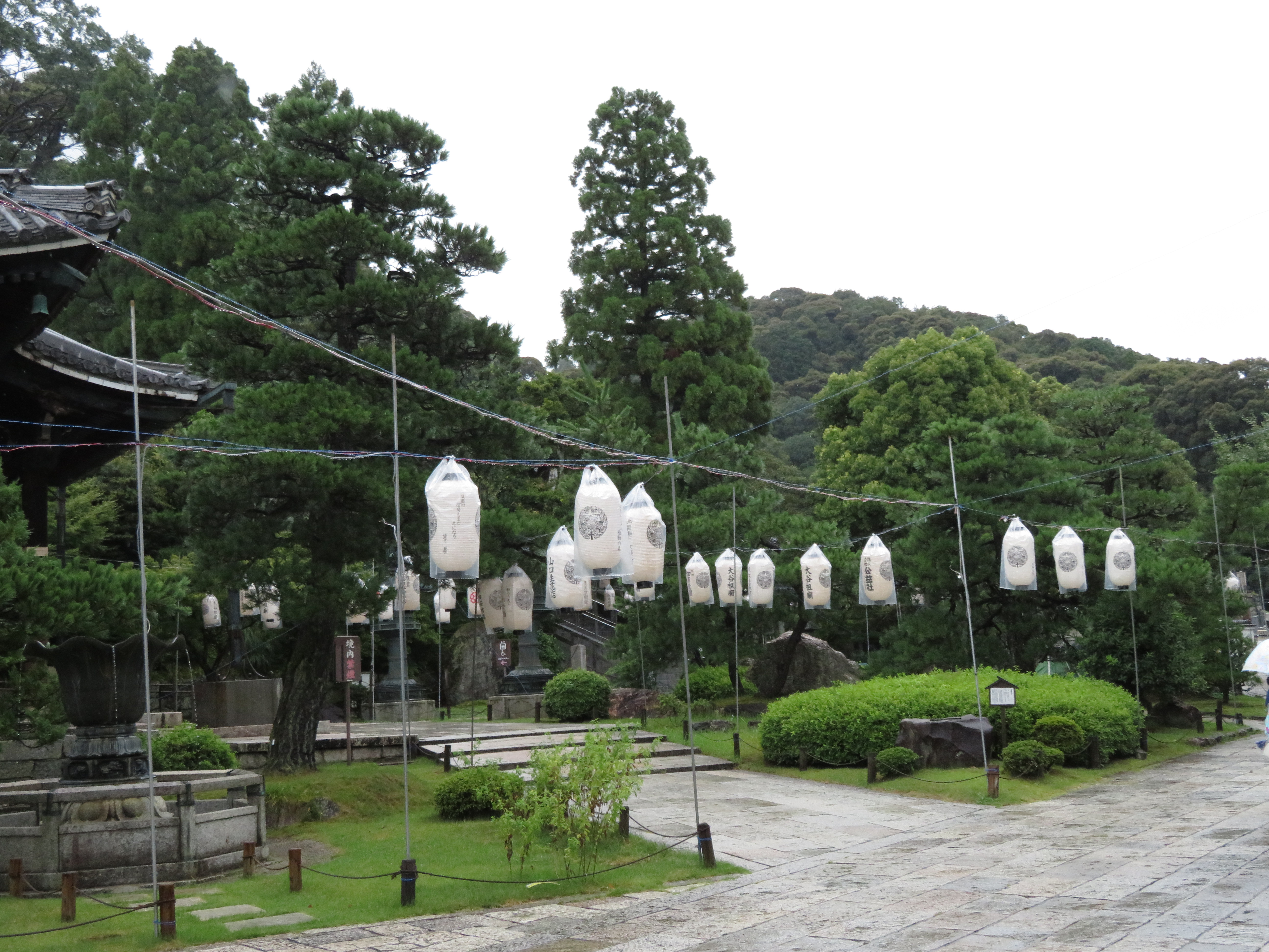 The cemetery and the park nearby still had lanterns up I think for Obon. Many were covered in plastic because of the sporadic rainy weather.