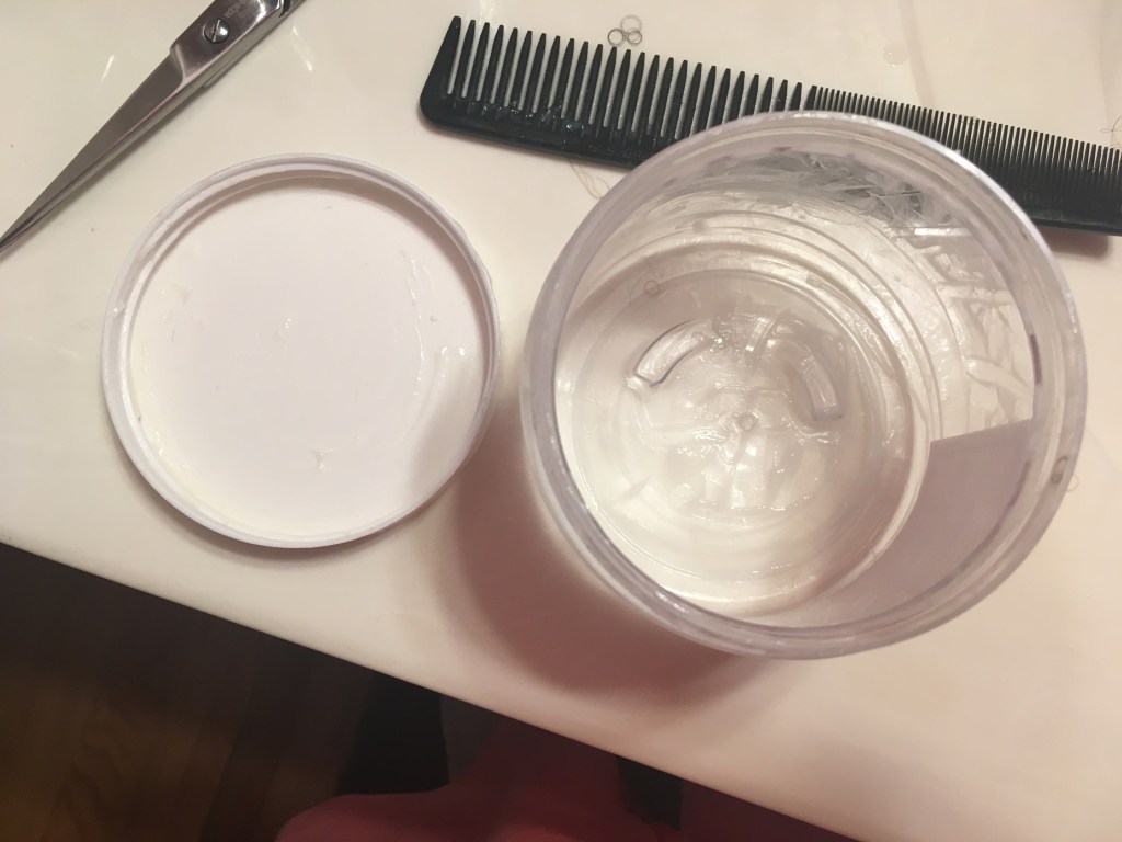 This is my empty jar of My Honey Child’s Honey Hair Mask Deep Conditioner. You should have seen me literally trying to not waste one drop, scooping out even what was left in the lid and scraping the sides and bottom of the jar.